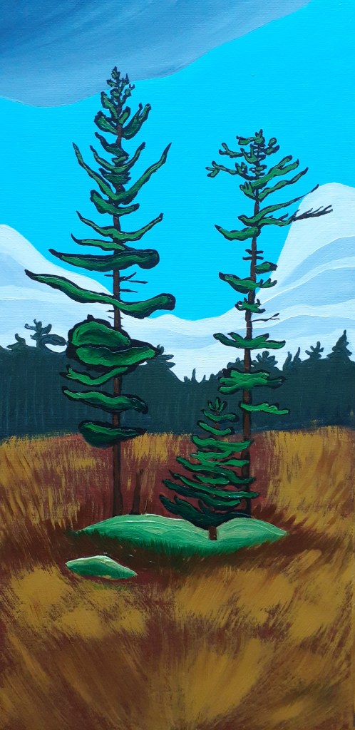 Common themes are The Great Lakes: Ontario and Superior; Northern Ontario: Georgian Bay and the French River; Alberta: Badlands and Jasper’s Rocky Mountains. Cottage Country is a common theme too, in custom work.