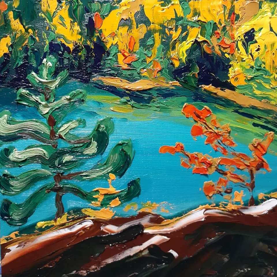 What will you find here? Collections of oil paintings, oil sketches, and acrylic art. Smooth calm waters and skies, moody northern terrain, and occasionally turbulent compositions done by palette knife!