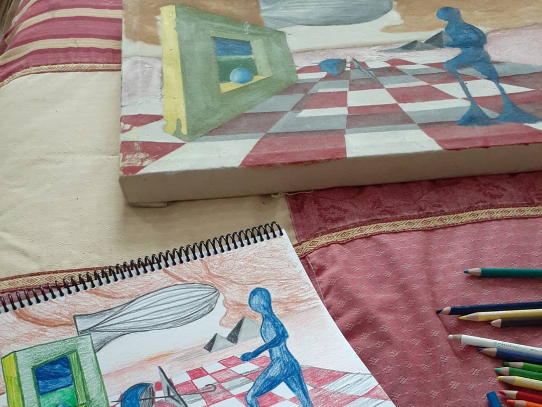 I decided to name 2021 my year of creativity. I started an Instagram account @2021_The_Creative_Year to document the journey. The project started with monthly challenges, so in January I did photo-poetry every day; in February I did a sketch every day; in March I did a mini-painting every day; in April the project started to shift because I decided to work on an embroidered jean-jacket that took too much time.