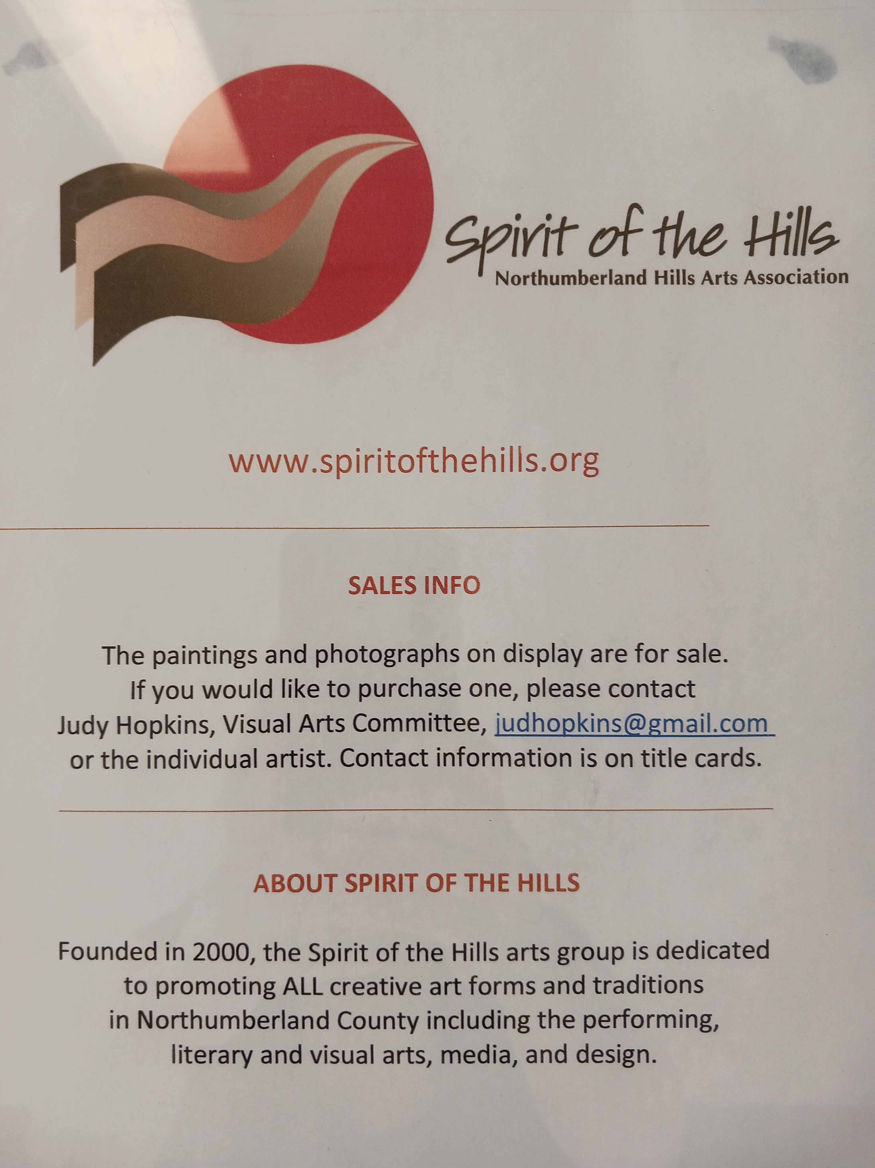 Twice a year, Spirit of the Hills Art Association has a small art exhibit on display at the Northumberland Hills Hospital in Cobourg.