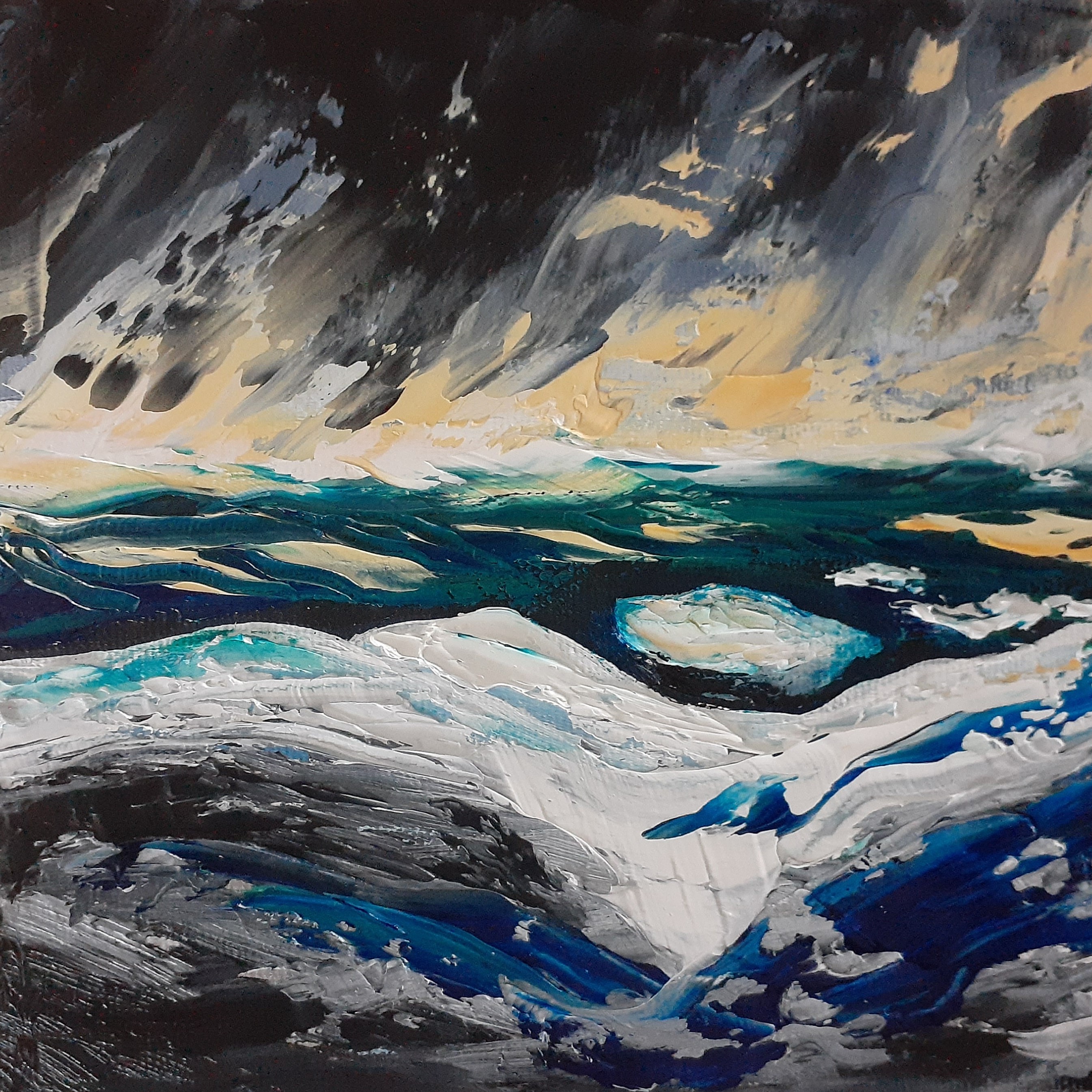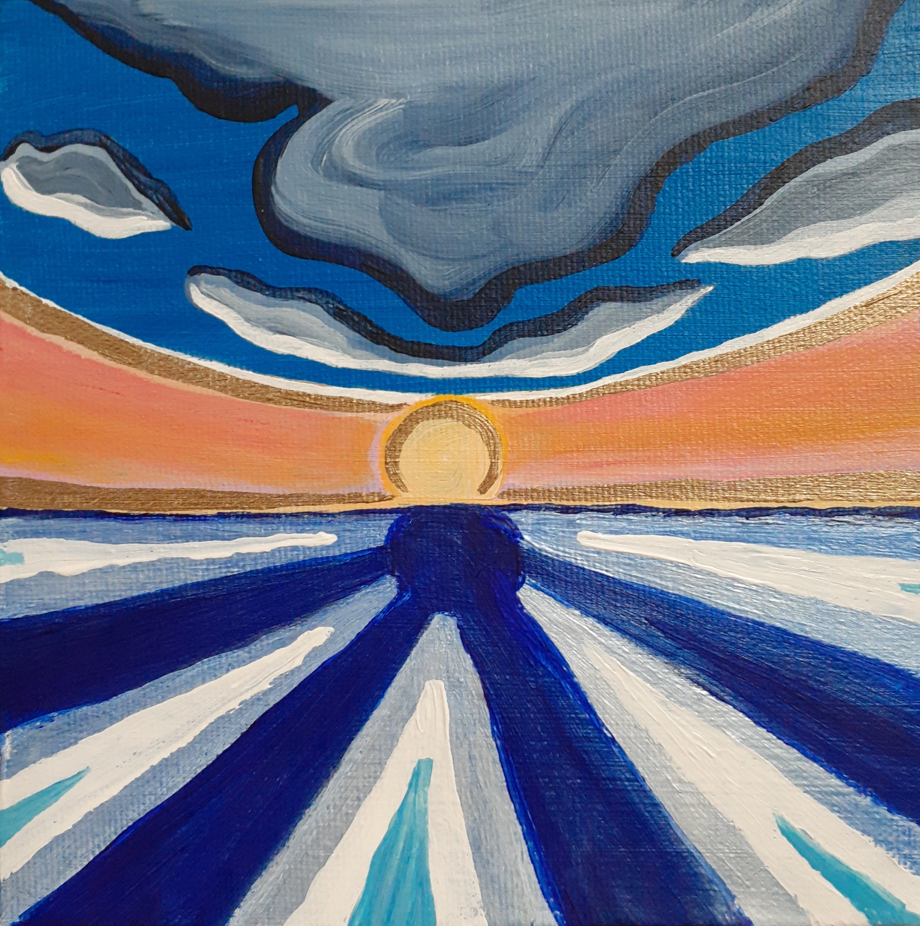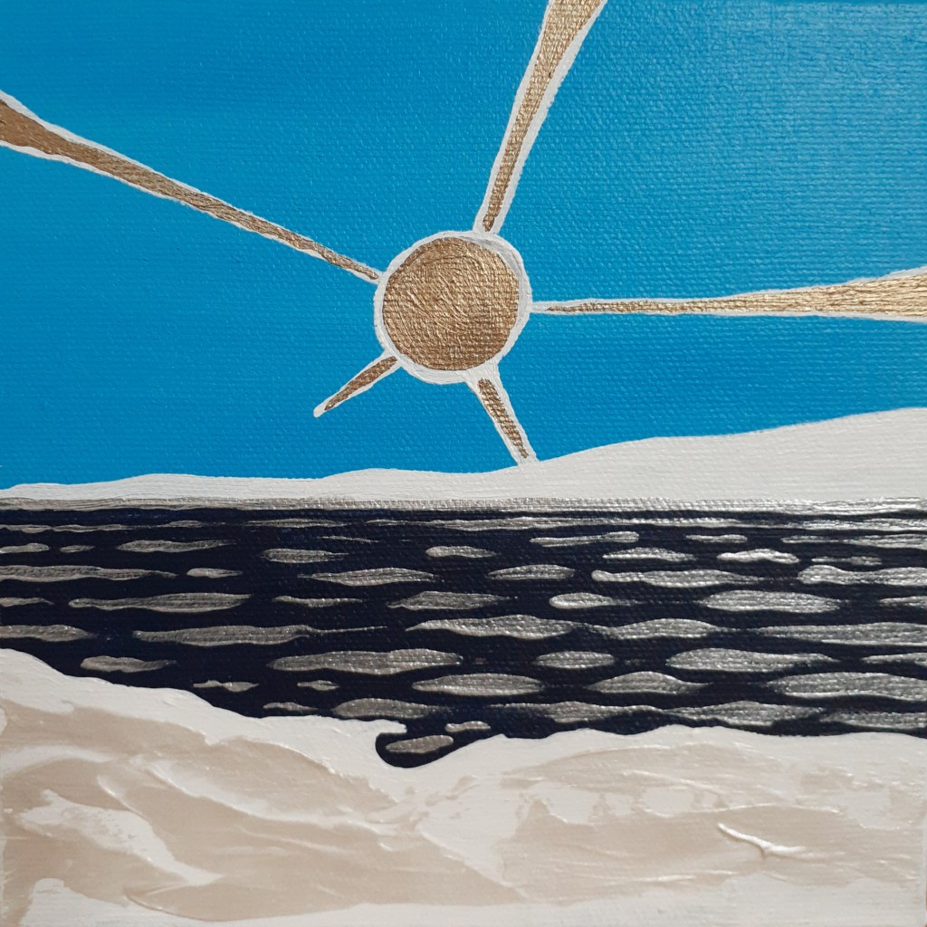 This is what I call a “mini-collection.” A series of 4 small (6×6 inch) acrylic paintings. These are all painted on gallery canvas, and are wired and ready to hang! Edges are painted black.