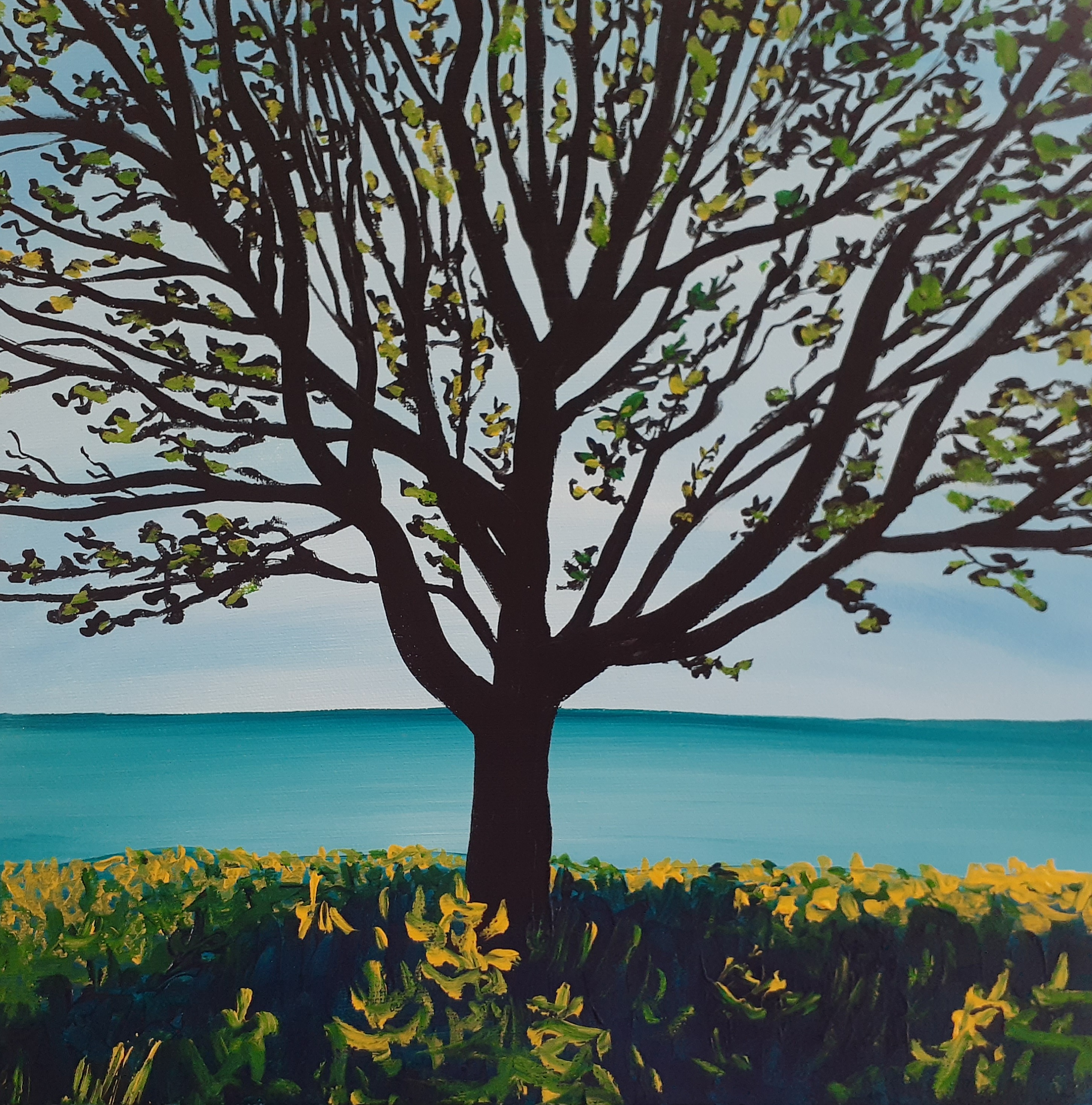 “Summer at the Cove” 12×12 inches, Oil on Gallery Canvas
