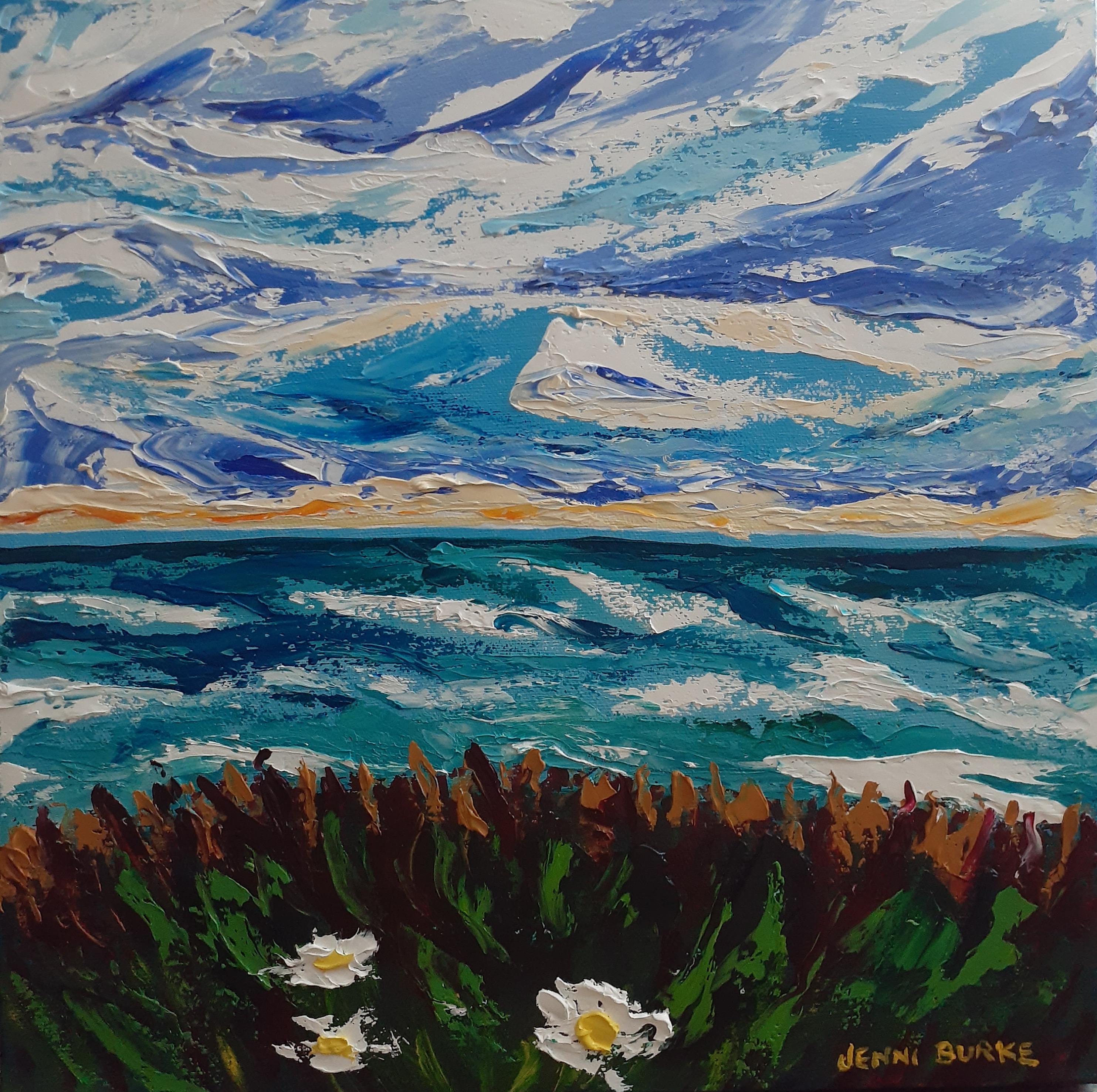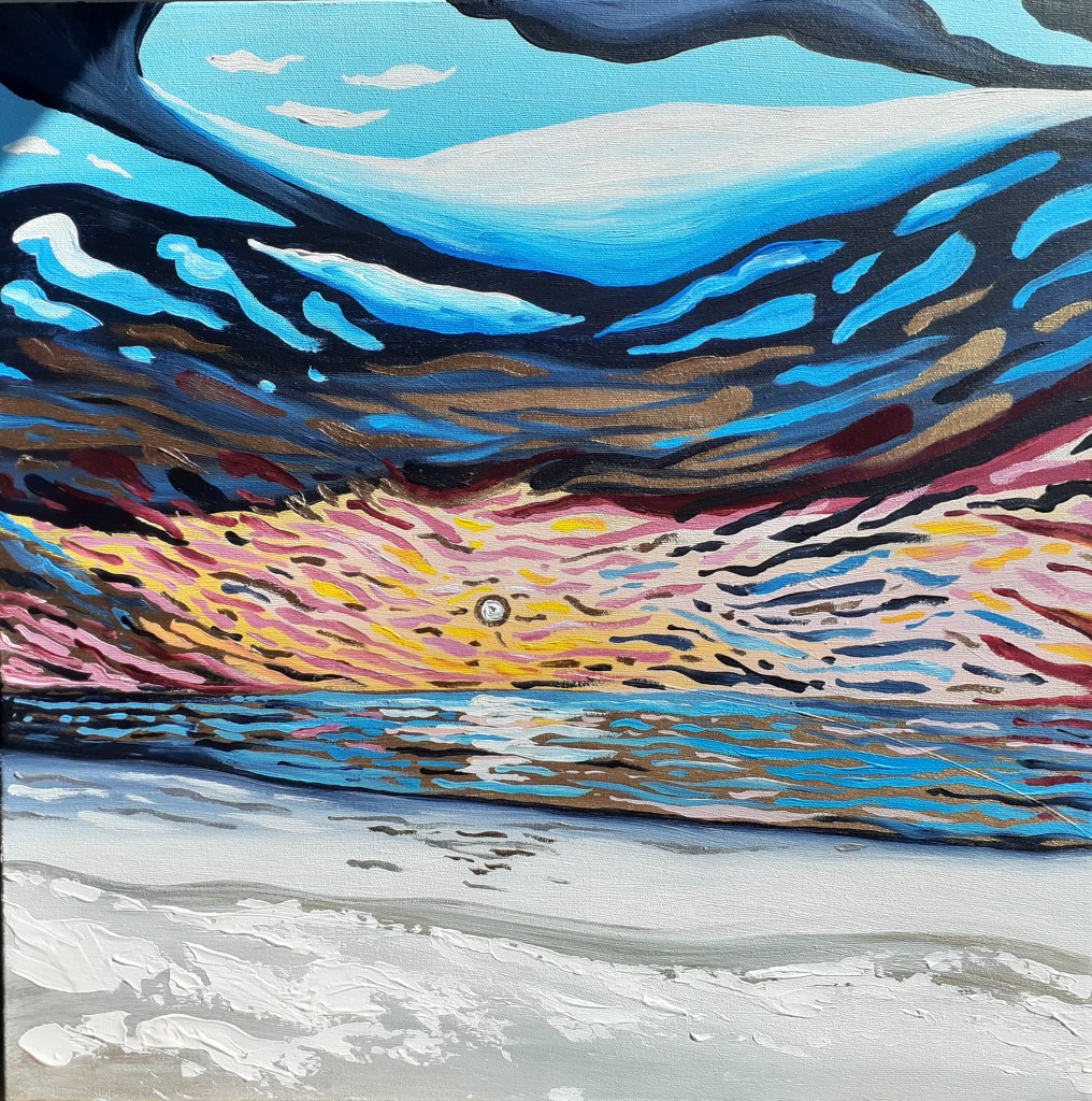 “Wild Skies” Acrylic on Gallery Canvas, 18×18 inches